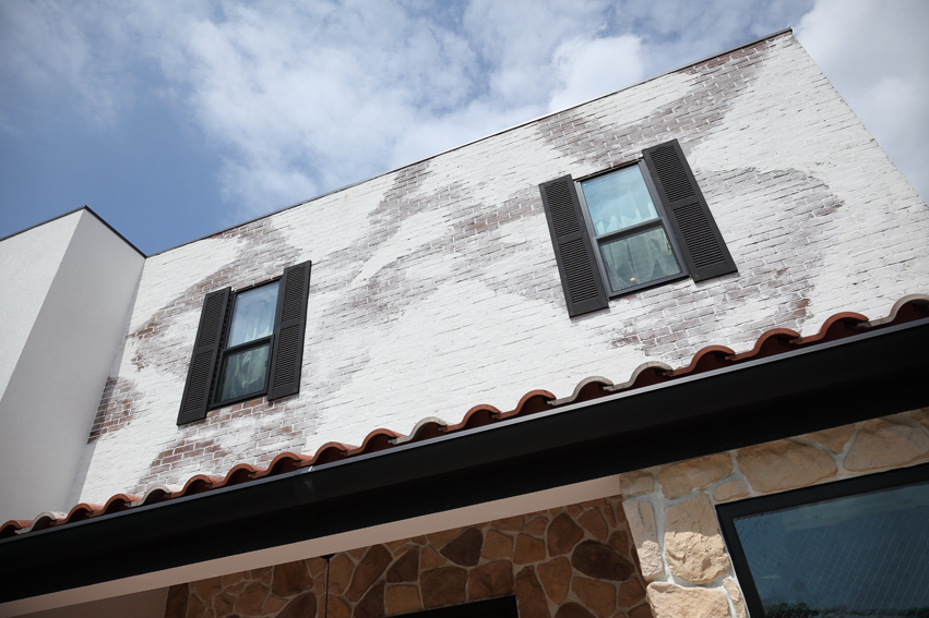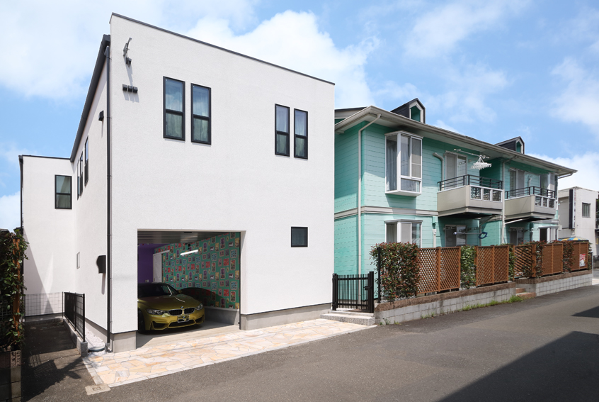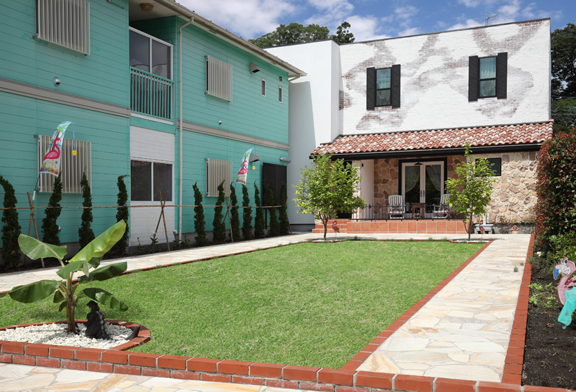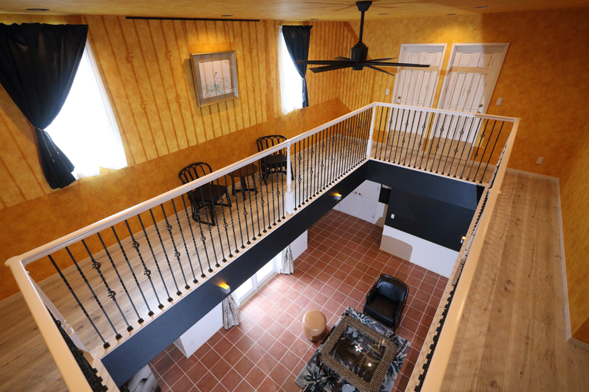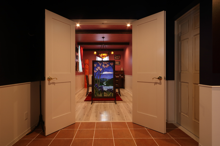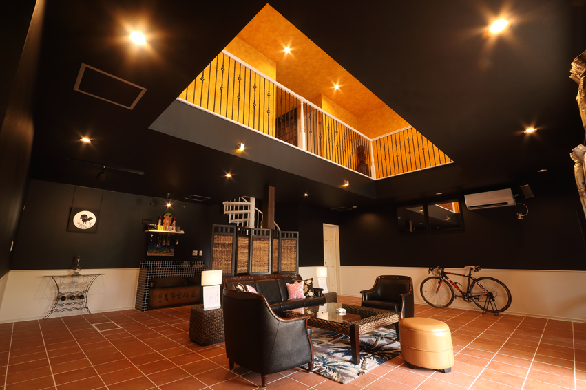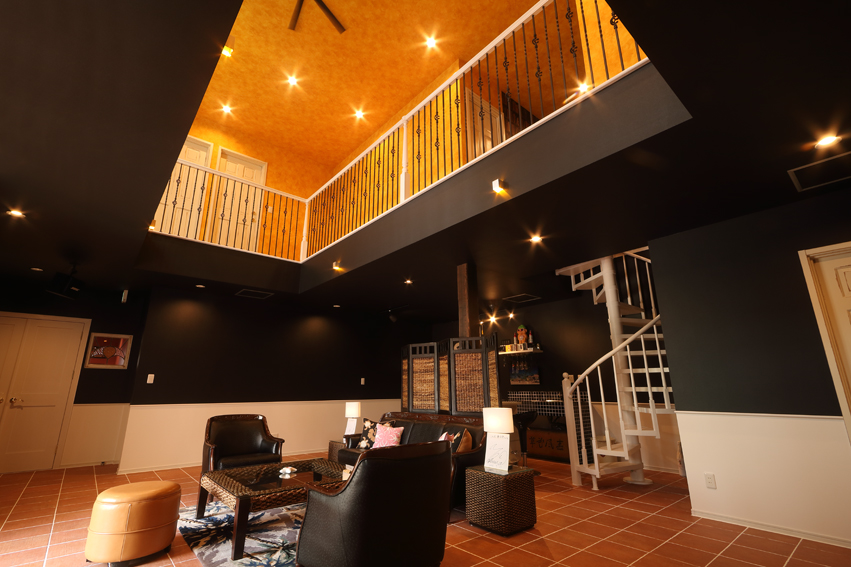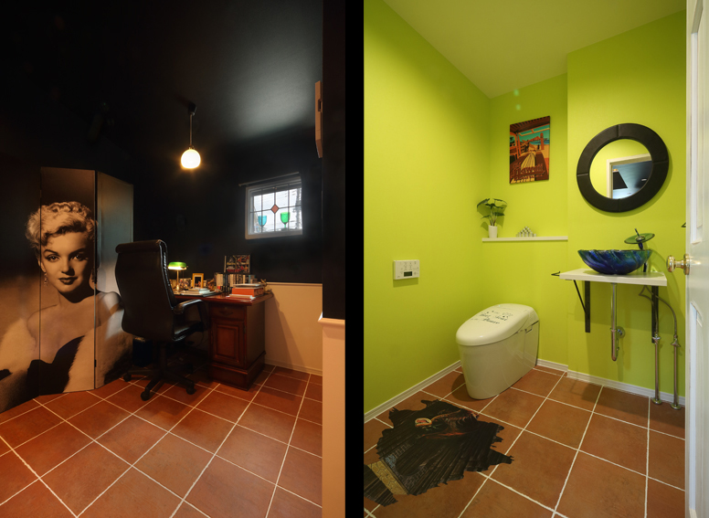 とても個性的なオーナー様の住宅型事務所。現場監督曰く99%オーナー様の意向を設計に取り入れたそうです。色使いや前庭はとても個性的です。二階に回廊があり一階の事務所から全て視界に入るようになっています。事務所に来られる方へのおもてなしも行き届いたものになるでしょう。撮影は監督様の準備もよくとても順調でした。