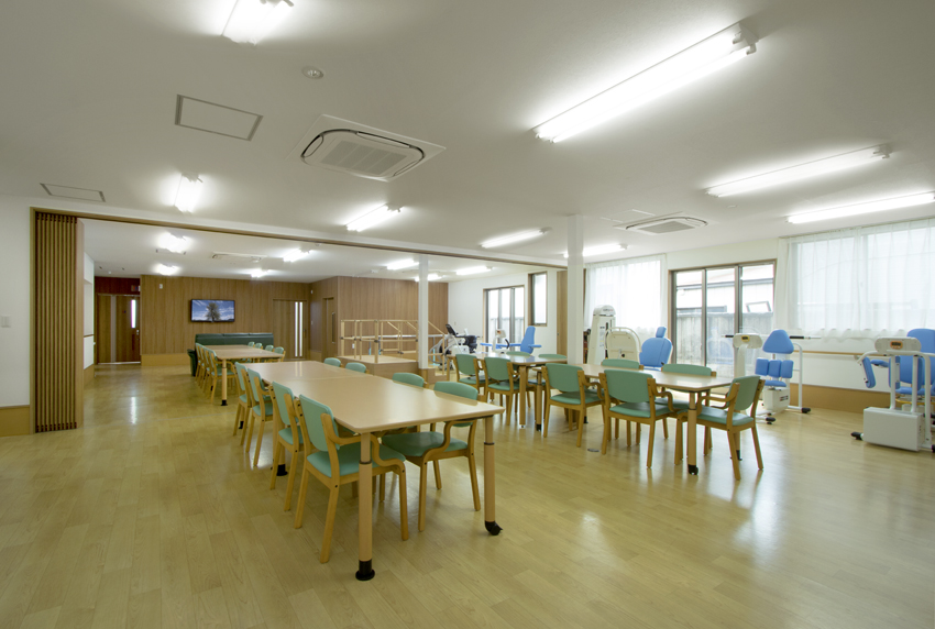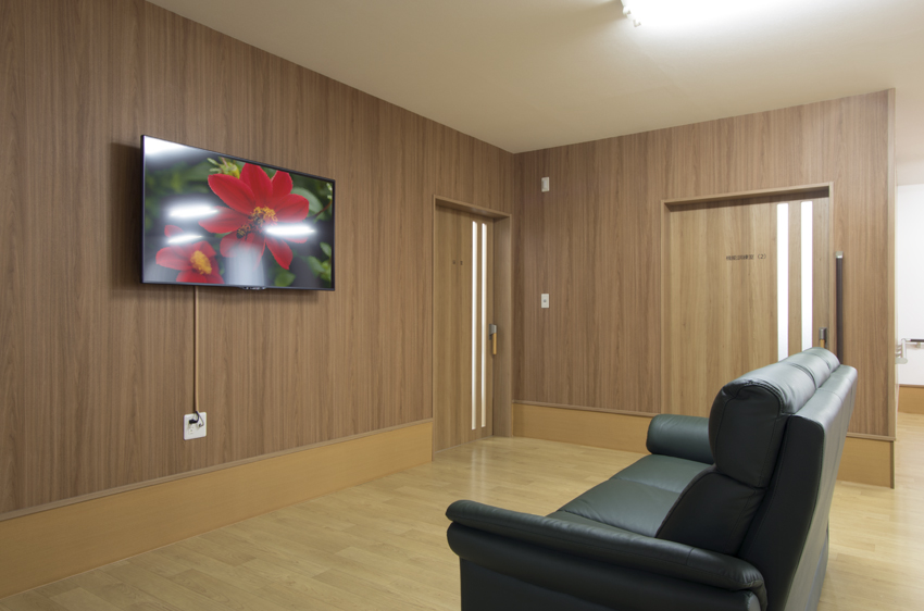 新規のお客様からのご依頼です。介護施設の撮影は多く経験しています。節電のため照明用蛍光管を半分外してあります。画像処理で全て点灯したように施工しました。またテレビも 画像処理で映像をはめ込んでいます。