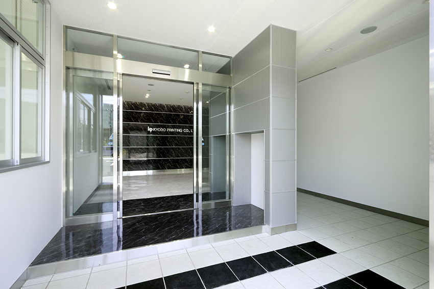 相模原に建設された大手印刷会社。とても大きな工場で撮影前はプレッシャーを感じましたが、現場の方々にご協力いただいて撮影できました。撮影は2回に及び外観は合成処理しています。一回目撮影がお天気に恵まれ、美しい空はそのままです。