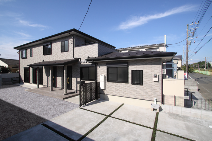 クリニック兼2世帯住宅の撮影です。広く大きなお家なのでパース感に違和感のないように心がけます。向かって左側からの撮影は隣接するアパートの共用廊下をお借りして撮影しています。地面はむき出しの土や資材があったので、砂利に画像合成しています。芝生にするか迷うところですが、砂利のほうが自然ですね。陰なども画像処理で自然に見えるように処理しています。