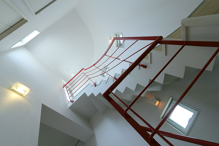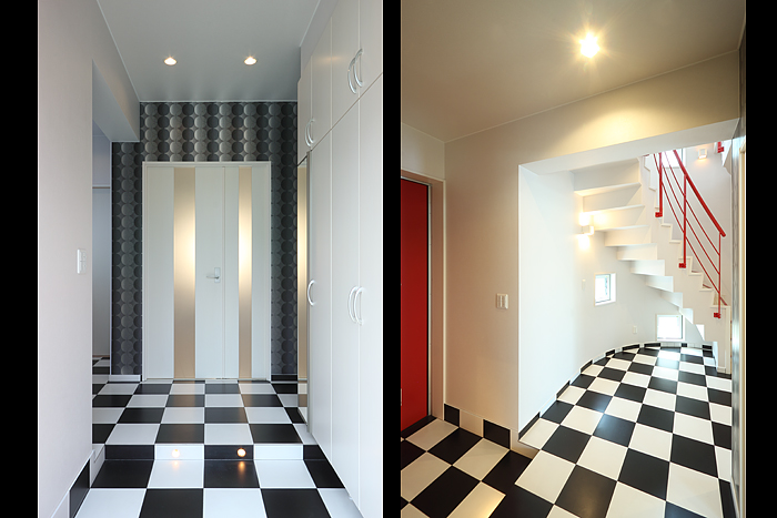 コンクリート打ちっぱなし住宅。無機質な色に対してインテリアはカラーリングが楽しい。オーナー様や建築家の意図が伝わってきます。施工者様もご苦労されたと思います。撮影は順調に進めることができました。外観は敷地に砂利を合成しています。